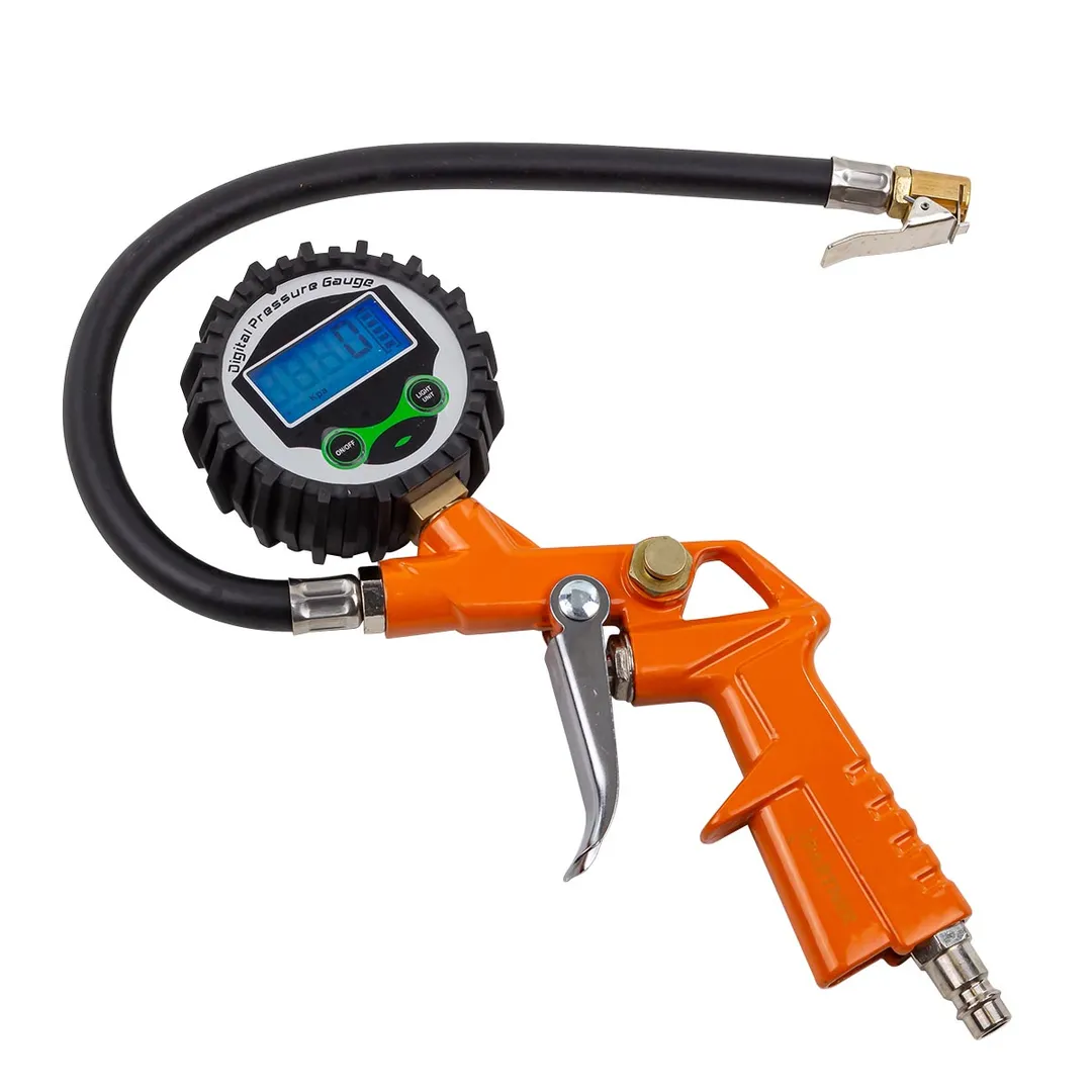 Пистолет для подкачки шин с цифровым манометром и шлангом предназначен для применения в шиномонтажных мастерских, станциях технического обслуживания автомобилей и мототехники, а также для автолюбителей. Благодаря встроенному цифровому манометру вы сможете контролировать давление в накачиваемой при помощи этого устройства шине. На корпусе пистолета расположены 2 кнопки вкл/выкл(ON) и кнопка переключения показаний измерений(FUNC). Цифровой манометр имеет 2 режима показаний измерений, такие как: BAR, PSI. Диапазон измерений Bar: 0 - 16. Пистолет для подкачки шин для своей работы требует подключения к компрессору, способному обеспечить его сжатым воздухом, давлением. Эргономичная рукоятка - удобно работать.Преимущества работы с нами