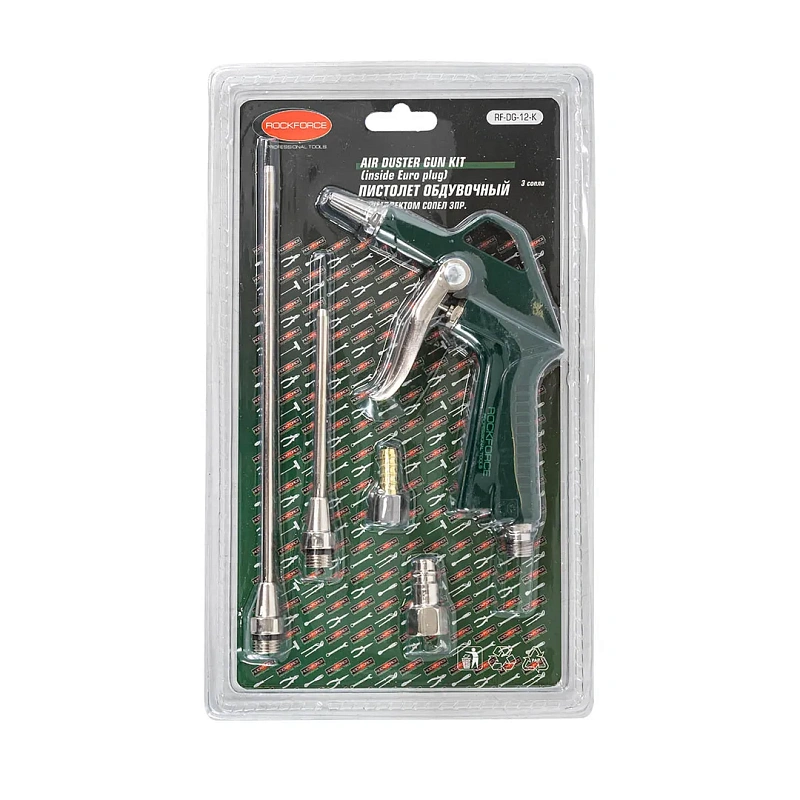 Пистолет обдувочный с комплектом сопел 20, 90, 165 мм 3 пр, штуцер под б/с, штуцер елочка 8 мм RockForce RF-DG-12-K