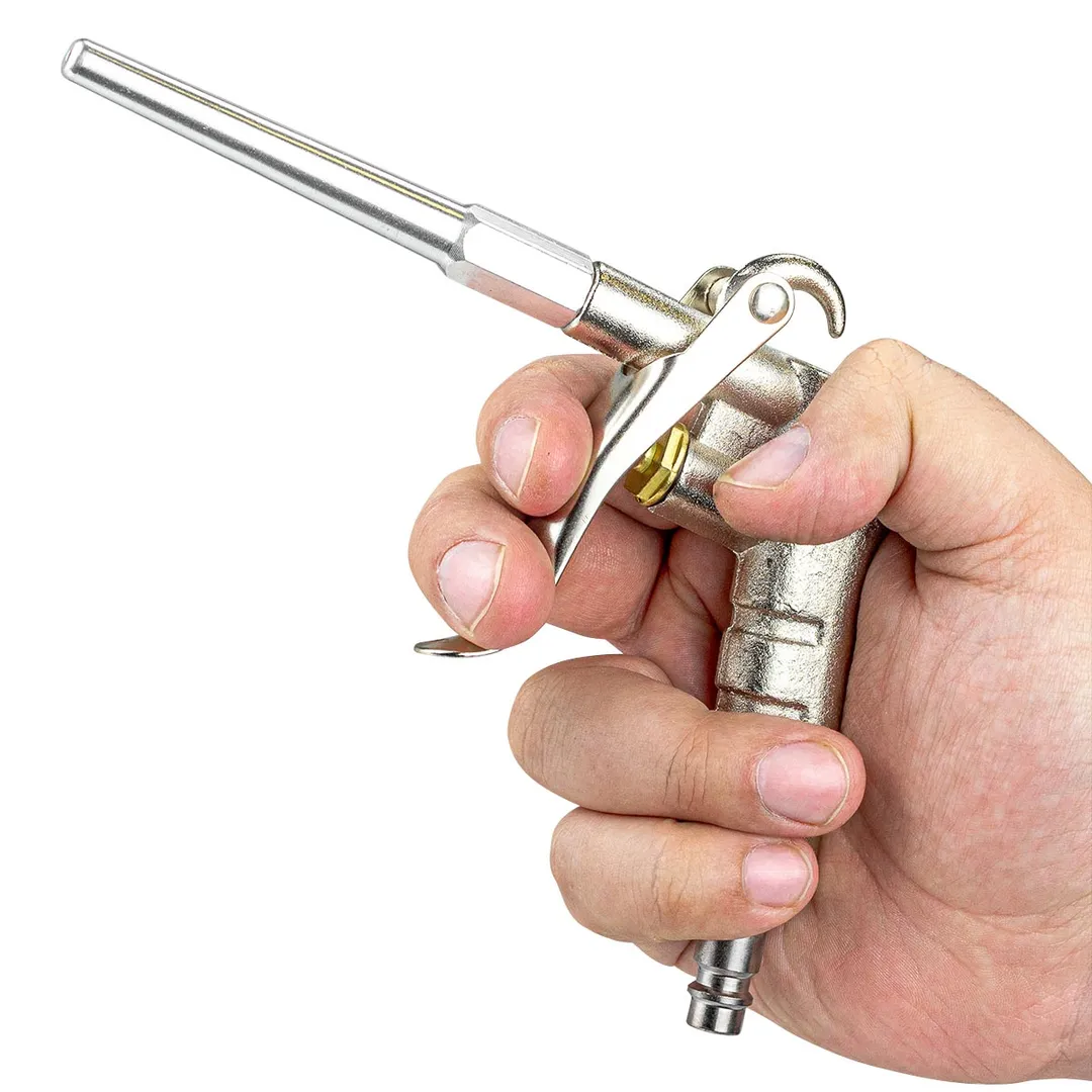 Пистолет обдувочный - это инструмент для очистки струей воздуха. Длина сопла составляет 90 мм. Позволяет добиться точечной и направленной очистки, благодаря узкому и сфокусированному потоку сжатого воздуха, что особенно полезно при работе с мелкими или сложными деталями, для очистки или удаления пыли, грязи, опилок, остатков и других мелких частиц с поверхностей или из узких пространств. Продувочный пистолет снабжен механизмом для подачи сжатого воздуха. Ручка пистолета имеет удобную форму для удержания и контроля инструмента. Применяется для очистки двигателей, салона автомобиля, вентиляционных отверстий и других труднодоступных мест от пыли, песка и других загрязнений.Преимущества работы с нами