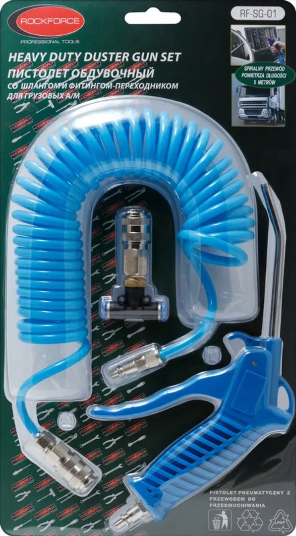 Пистолет обдувочный со шлангом и фитингами-переходниками для грузовых а/м, сопло-120 мм, шланг-5м RockForce RF-SG-01, описание и характеристики: