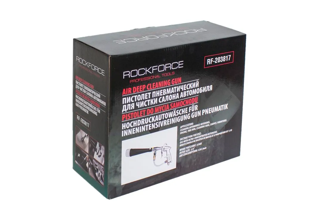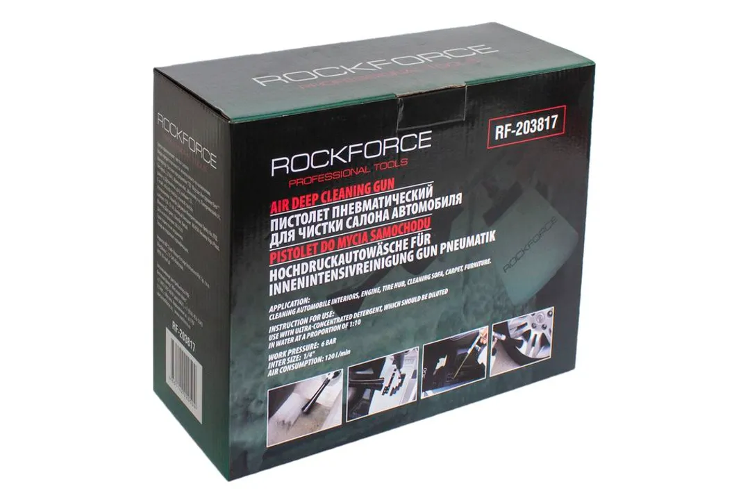 Пневмистолет ''Tornado'' для химчистки салона а/м со сменной щеткой-насадкой, 6 bar, расход воздуха 120 л/мин RockForce RF-203817, описание и характеристики: