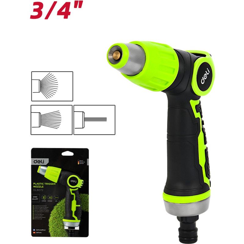 Пистолет-распылитель Deli GS EDL8072, 3 функции, быстросъем, бескурковый, черный, зеленый