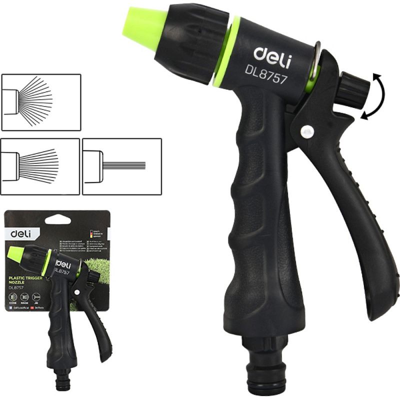 Пистолет-распылитель Deli GS EDL8757, 3 функции, быстросъем, фиксатор курка, черный, зеленый