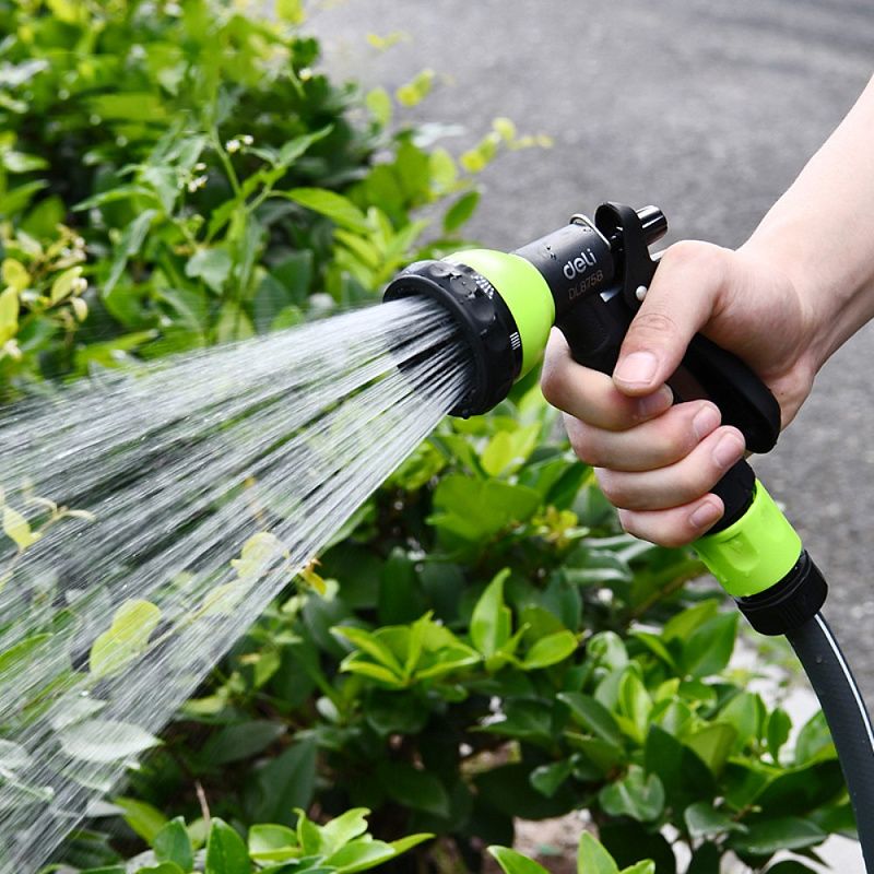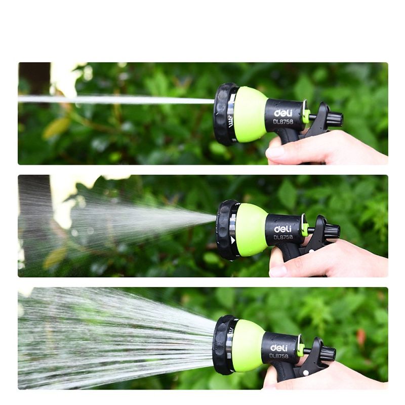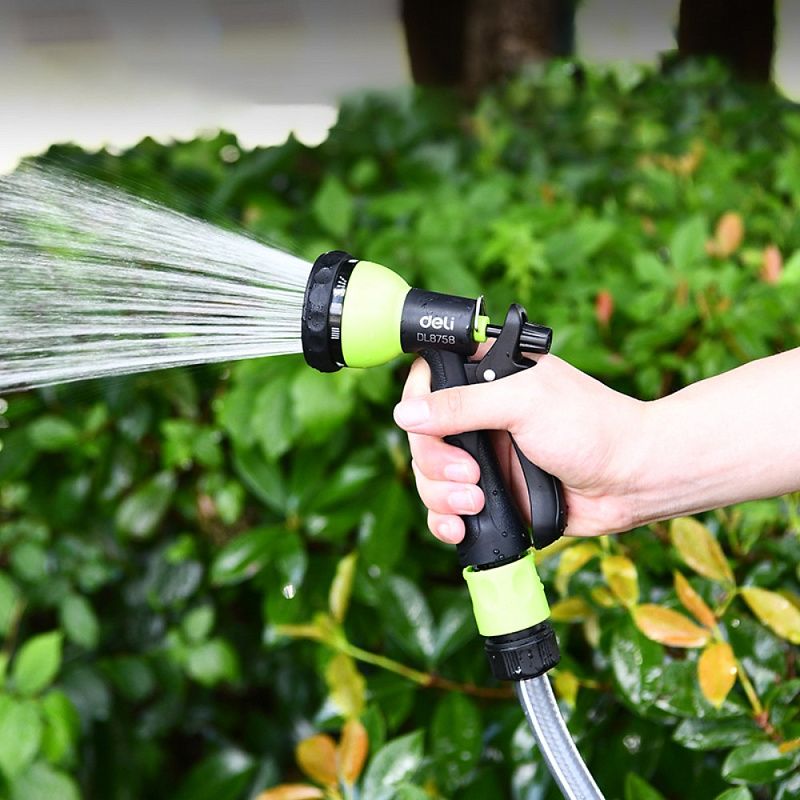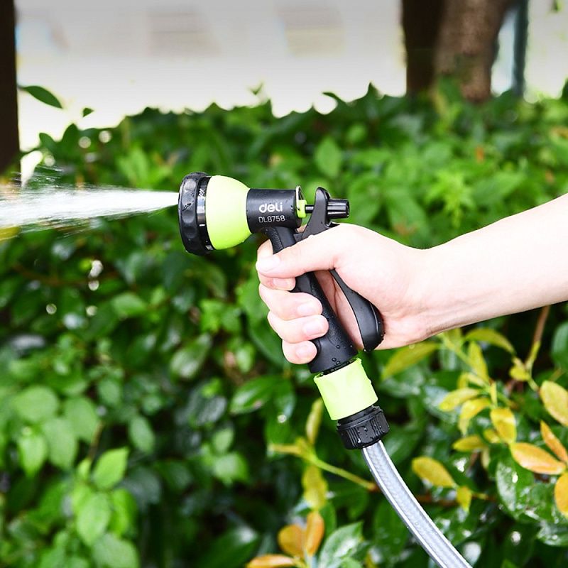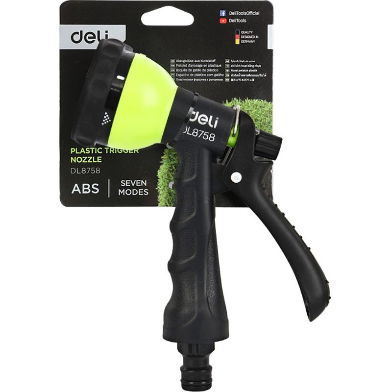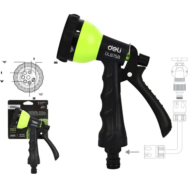 Пистолет-распылитель Deli GS EDL8758, 7 функций, быстросъем, фиксатор курка, черный, зеленый