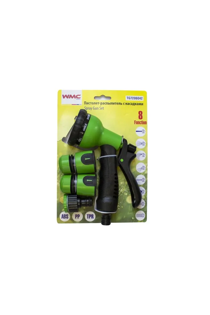 Пистолет-распылитель поливочный с регулировкой подачи воды в комплекте с быстроразъемами 4пр. 8 режимов распыления,на блистере WMC TOOLS WMC-TG7206042