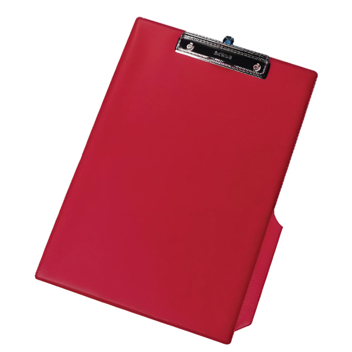 Офисный планшет с основой из картона толщиной 2 мм. Он покрыт пленкой высокого качества. Может за раз захватить до 50 листов плотностью 70 gsm. Держатель для карандаша и ручки расположен вдоль широкой стороны. Специальный держатель позволяет размещать планшет на стене. Формат A4, размер 230×350 мм.