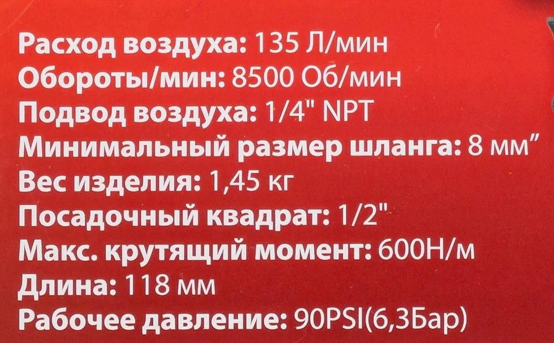 Гайковерт пневматический ударный 1/2'' 600Нм RockForce RF-82542, описание и характеристики: