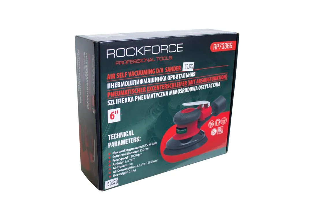 Пневмошлифовальная орбитальная машинка с принудительной системой пылеотвода 6'' RockForce RF-RP7336S, описание и характеристики:
