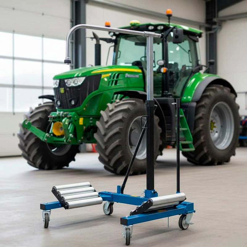 Это незаменимый инструмент для безопасного и эффективного шиномонтажа на крупной спецтехнике. Эта тележка-манипулятор значительно снижает физическую нагрузку и ускоряет процесс работы с массивными колесами, требуя усилий всего одного оператора.