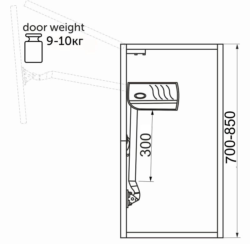 Подъемный механизм Hermes значительно упрощает организацию пространства и делает его более функциональным. Он обеспечивает удобство и безопасность, что делает его полезным дополнением к любой кухне. Материал: сталь, пластик. Покрытие: никель, хром. Цвет заглушки: серый. Бесшумное и плавное закрывание благодаря встроенному доводчику. Легкое открытие и фиксация в любом положении обеспечивает отличный доступ к содержимому ящика. Регулировка угла открывания фасада. Рекомендуемая ширина фасада: 600-900 мм. Рекомендуемая высота фасада: 651-850 мм. Подъемный механизм В рассчитан на вес фасада 6,1-7,0 кг. Комплект включает в себя: подъемный механизм – 2 шт, пластиковая заглушка – 2 шт, крепление фасада – 2 шт, промежуточнаяПетля – 2 шт, саморез 3,5х14 – 8 шт, саморез 4х35 – 8 шт, саморез 5х18 – 4 шт, стяжка 6х22 – 2 шт, комплект шаблонов для установки,инструкция по установке. В комплект подъемного механизма входят промежуточные петли для предотвращения защемления пальцев. Петли для верхнего фасада в комплект не входят и приобретаются отдельно (2 шт). Рекомендуется использование петель PRIME без пружины.Технические характеристики: