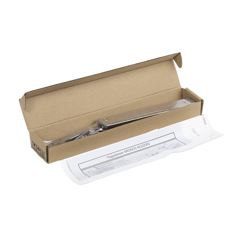Подъемник KRONOS MODERN под механизм push-to-open предназначен для открытия фасада вверх и его фиксации в открытом положении. Он идеально подходит для сборки небольших тумб и верхних шкафов кухни, обеспечивая как удобный доступ к их содержимому, так и безопасное использование. Подъемный механизм в стальном корпусе и с усовершенствованной конструкцией в зависимости от веса фасада может устанавливаться как с одной, так и с двух сторон ящика. Минимальная высота ящика 220 мм. Минимальная глубина ящика 150 мм. Усилие подъемника можно регулировать, поворачивая внутренний винт. Угол открывания двери зависит и ограничен углом открывания петли, используемой при установке. При открытии фасада данный подъемный механизм стремится самостоятельно поднять фасад в верхнюю точку, т. е. фиксация в любом положении отсутствует. Рекомендуется установка сПетлями без пружины. Петли и механизм открытия от нажатия, используемые совместно с подъемником, приобретаются отдельно. Цвет механизма: хром. В комплект входит: подъемник - 1 шт, крепление фасада - 1 шт, крепление корпуса - 1 шт, шайба - 2 шт, саморезы 3,5*16 - 5 шт, винт М4*10 - 1 шт, шаблон, инструкция. МощностьН (heavy). Коэффициент мощности LF=1500-2240. В зависимости от материала и веса фасада подходящую мощность подъемника можно определить с помощьюкалькулятора расчета подъемников.Технические характеристики: