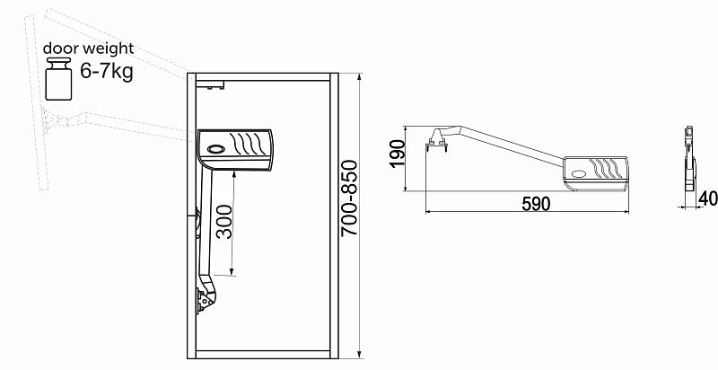 Подъемный механизм Hermes значительно упрощает организацию пространства и делает его более функциональным. Он обеспечивает удобство и безопасность, что делает его полезным дополнением к любой кухне. Материал: сталь, пластик. Покрытие: никель, хром. Цвет заглушки: серый. Бесшумное и плавное закрывание благодаря встроенному доводчику. Легкое открытие и фиксация в любом положении обеспечивает отличный доступ к содержимому ящика. Регулировка угла открывания фасада. Рекомендуемая ширина фасада: 600-900 мм. Рекомендуемая высота фасада: 651-850 мм. Подъемный механизм В рассчитан на вес фасада 6,1-7,0 кг. Комплект включает в себя: подъемный механизм – 2 шт, пластиковая заглушка – 2 шт, крепление фасада – 2 шт, промежуточнаяПетля – 2 шт, саморез 3,5х14 – 8 шт, саморез 4х35 – 8 шт, саморез 5х18 – 4 шт, стяжка 6х22 – 2 шт, комплект шаблонов для установки,инструкция по установке. В комплект подъемного механизма входят промежуточные петли для предотвращения защемления пальцев. Петли для верхнего фасада в комплект не входят и приобретаются отдельно (2 шт). Рекомендуется использование петель PRIME без пружины.Технические характеристики: