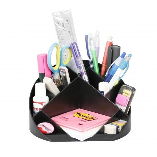 Имеет множество отделений для канцпринадлежностей. Компактно располагается на столе.