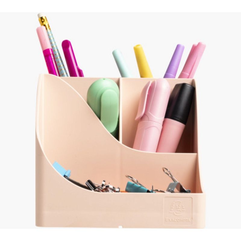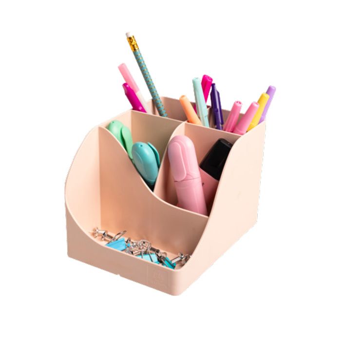 Подставка предлагает 4 высоких отделения для крупных предметов: ножницы, ручки и 1 низкое отделение для мелких предметов, таких как скрепки, канцелярские кнопки.
