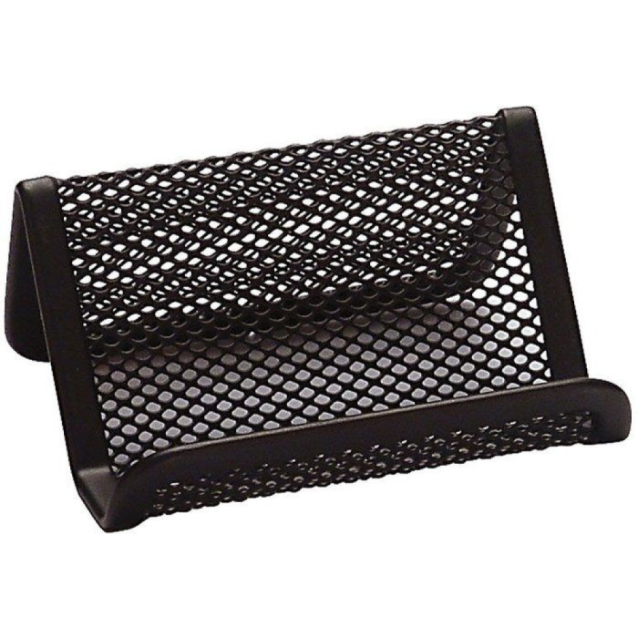 Подставка для визиток выполнена из металлической черной сетки. Размер подставки 95×75×45 мм.