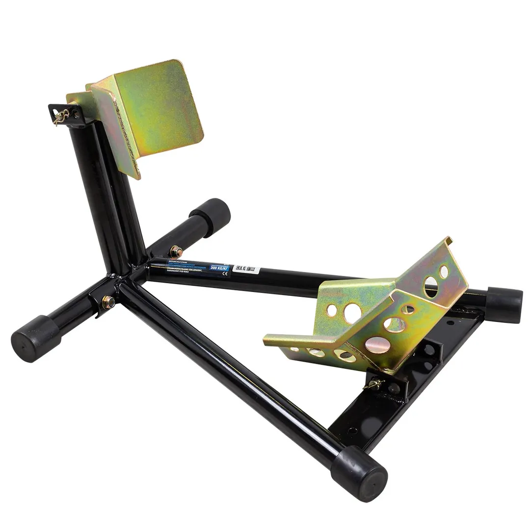 Подставка под колесо мотоцикла грузоподъемностью 300 кг используется в гараже или на гоночной площадке/транспортере. Простой противооткатный упор для колеса и гибкий зажим. Вместимость колес/шины: 400-450 мм (16"-17"); диаметр с шириной: 110мм – 130 мм. Резиновые ножки предотвращают скольжение. Производится из стали.Преимущества работы с нами