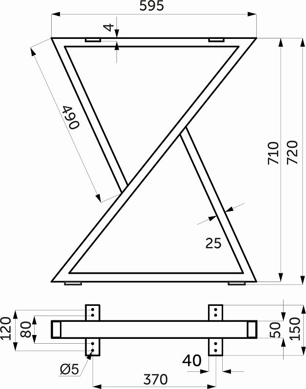 Подстолье изготовлено из металлического профиля 50*25мм. Толщина профиля 1,5мм. Покрытие - порошковое, черный муар. Рекомендуемая статическая нагрузка на 1 комплект (2 шт подстолья) - до 300 кг.Технические характеристики: