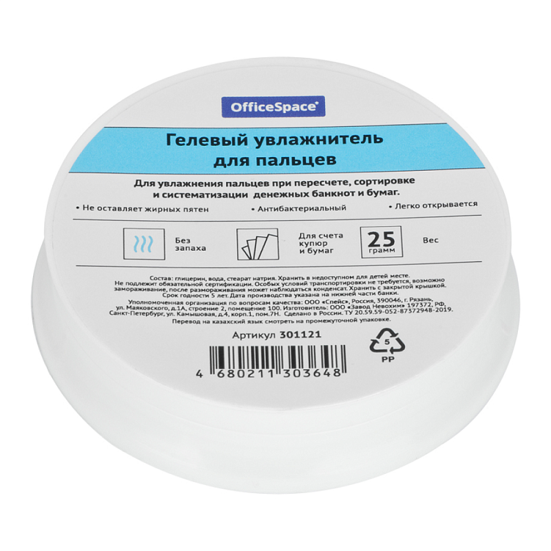 Подушка гелевая для увлажнения пальцев "OfficeSpace", 25 г.
