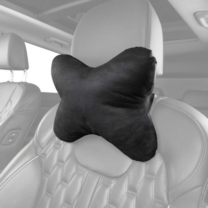 Подушка на подголовник алькантара/кожа иск. Черная SKYWAY S08001004