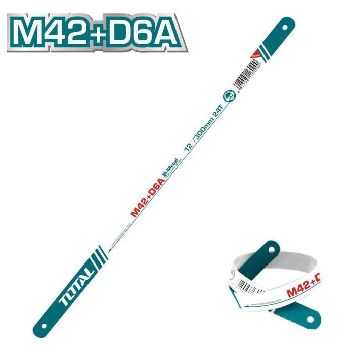- Материал лезвия - прочная и гибкая пружинная сталь, а зубья выполнены из сварной ленты из высоколегированной быстрорежущей стали.
