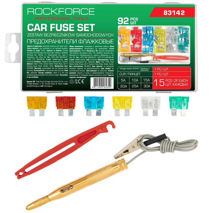Набор автомобильных плавких флажковых предохранителей от 5А до 30А 92 пр RockForce RF-FS-25(83142)
