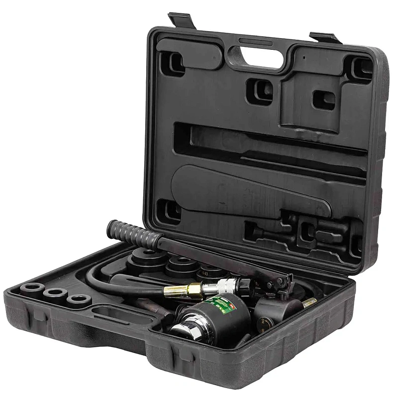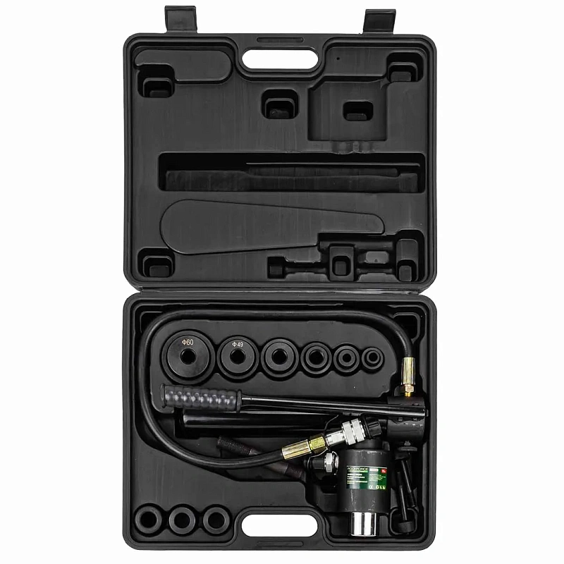 Пробойник гидравлический с насосом 11 т, Ø22, 27.5, 34, 43, 49, 60 мм, сталь нерж 1.6мм, медь/алюм 3.2 мм, ход штока 20 мм RockForce RF-71002D