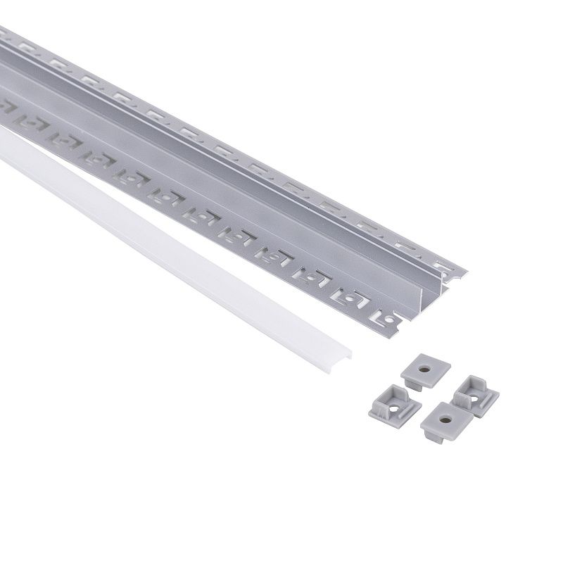 Профиль алюминиевый накладываемый на гипсокартон с экраном в индивидуальной упаковке, в комплекте с заглушками, предназначен для монтажа светодиодной ленты, длина 2м. , внутренняя часть вмещает ленту шириной до 12 мм.Технические характеристики: