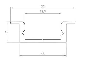 Врезной профиль, длина 2м. , внутренняя часть вмещает ленту шириной до 12 мм, подходит заглушка 77 268, держатель 77 267Технические характеристики: