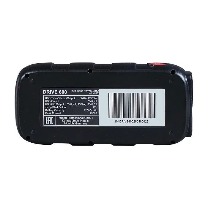 Пусковое устройство аккумуляторное DRIVE 600 Fubag 46673, описание: