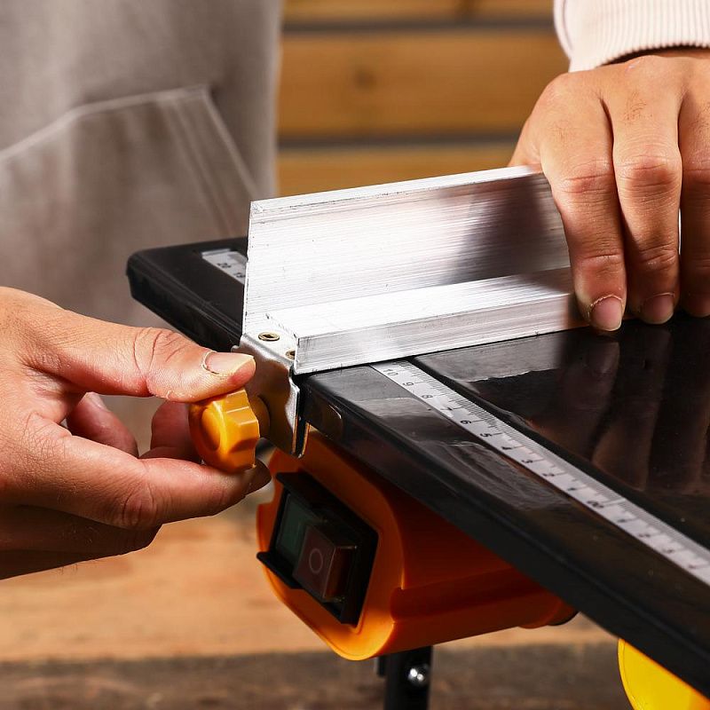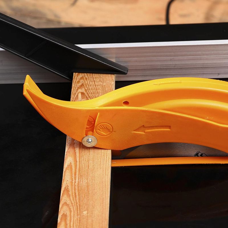 - Круглые заготовки разрешается распиливать только с применением соответствующего зажимного приспособления, так как они могут провернуться из-за вращающегося полотна пилы.