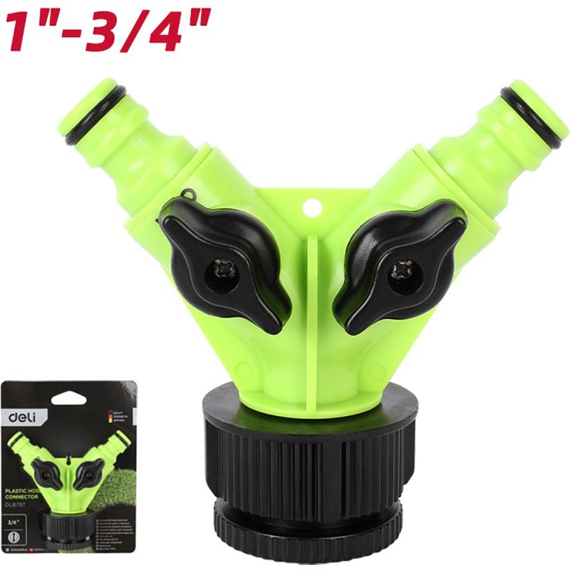 Распределитель поливочный двухканальный Deli GS EDL8797, 3/4", черный, зеленый
