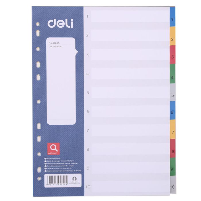 Разделитель "Deli", A4, 10 делений, ассорти
