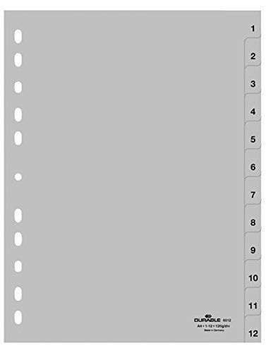 Разделитель "Durable", A4, 12 делений, серый