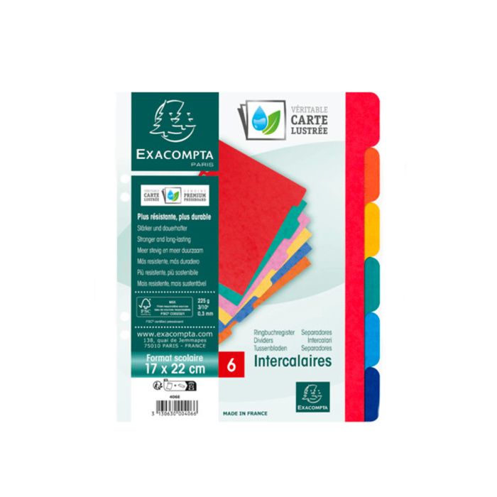 Цветной разделитель на 6 делений Exacompta выполнен из качественного прочного картона. Формат разделителя - А5+ (размер 220*170 мм). Разделители представлены в приятной яркой цветовой гамме.