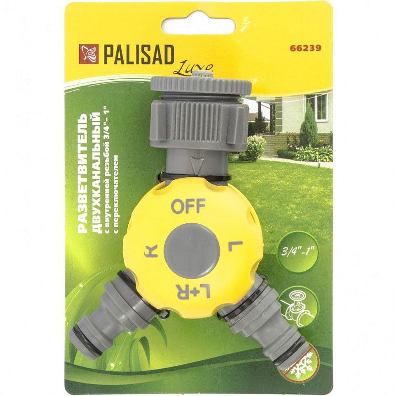 Двухканальный разветвитель Palisad LUXE 66239 с внутренней резьбой 3/4-1", с переключателем, служит для подключения двух магистралей к источнику водоснабжения, имеющему кран или отвод с внешней резьбой. Аксессуар позволяет охватить значительную площадь полива при монтаже системы орошения на дачном участке.