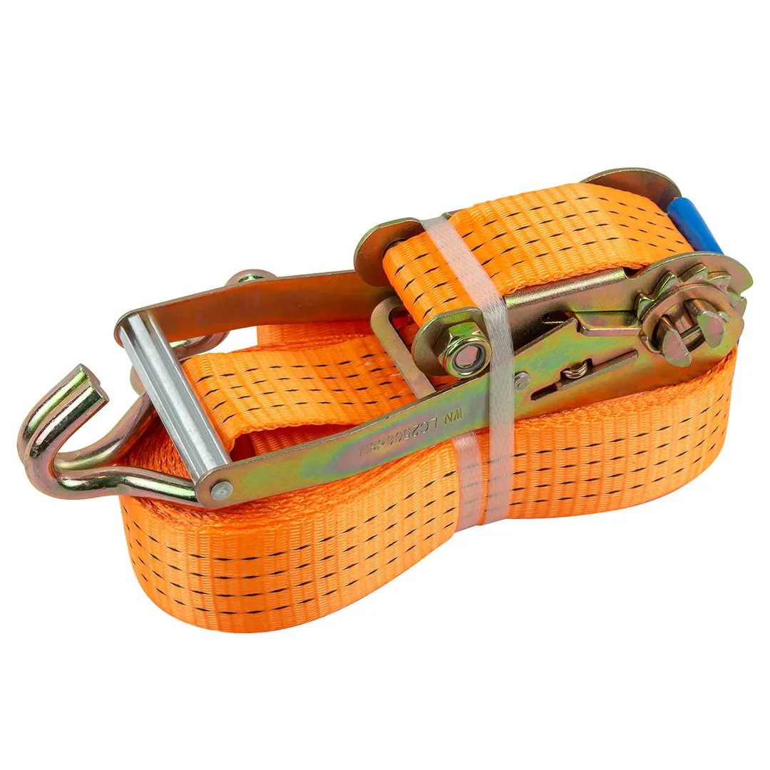 Ремень для крепления грузов с храповым механизмом предназначен для стяжки груза весом до 5 тонн и обеспечивают быстрое и надежное крепление груза. Храповый механизм позволяет затягивать ремень и удерживать его в нужной позиции, предотвращая ослабление ленты, закрепляющей груз, во время движения транспорта, что обеспечивает безопасность участников движения и сохранность перевозимых товаров. Сделан из сверхпрочных полиэфирных нитей, которые обеспечивают высокую прочность и износостойкость. Кроме того, ремень оснащен крюками, которые обеспечивают надежное крепление груза. Длина ремня составляет 10 метров, что позволяет использовать его для крепления груза любого размера и формы.Преимущества работы с нами
