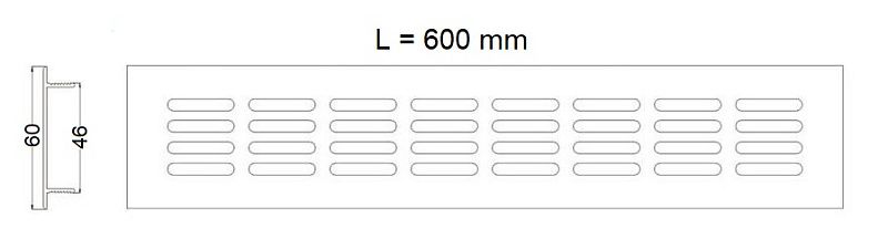 Решетка вентиляционная 600х60мм серебро алюминий AKS 115978, описание: