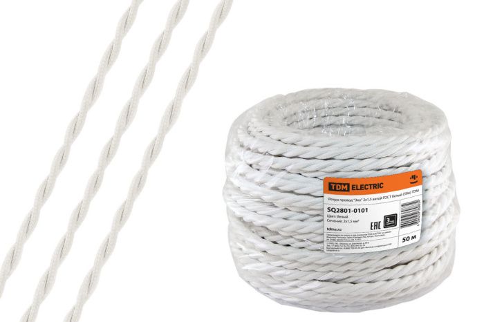 Ретро провод "Эко" 2х1,5 витой ГОСТ белый, 50м TDM SQ2801-0101