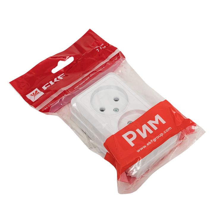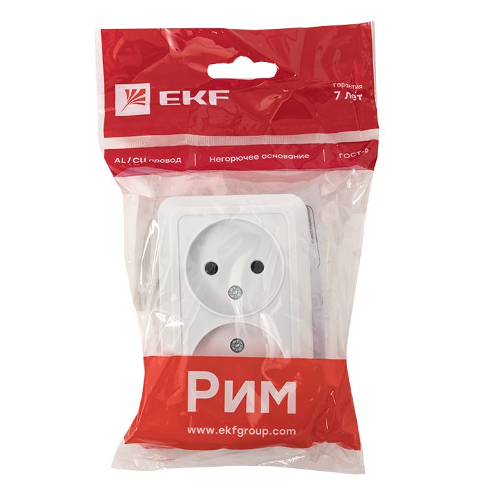 Рим Розетка 2-местная 10А без заземления белая EKF ENR10-102-10