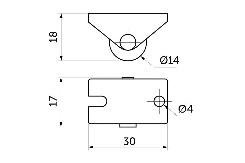 Ролик меб. d14 h18 прямоходящий, черный РП PL 100512
