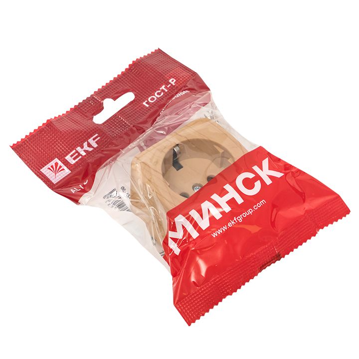 Розетка 1-местная ОП Минск 16А с заземлением светлое дерево EKF EGR16-028-30, технические характеристики: