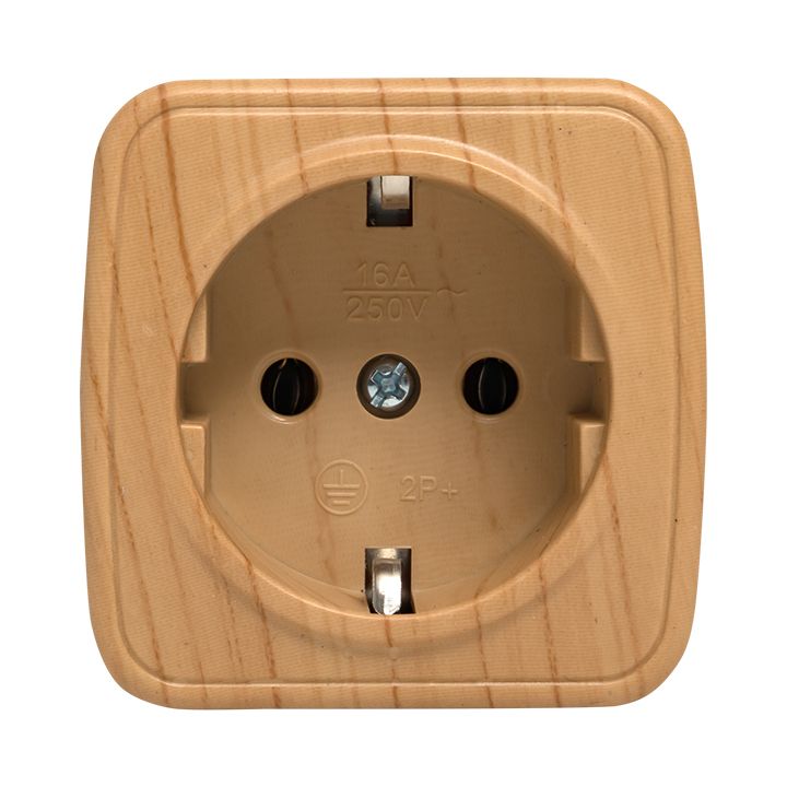 Розетка 1-местная ОП Минск 16А с заземлением светлое дерево EKF EGR16-028-30
