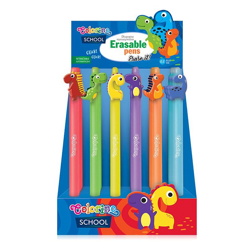 Ручка гелевая автоматическая "Dinosaurs пиши стирай", 0.5 мм, ассорти, стерж. синий