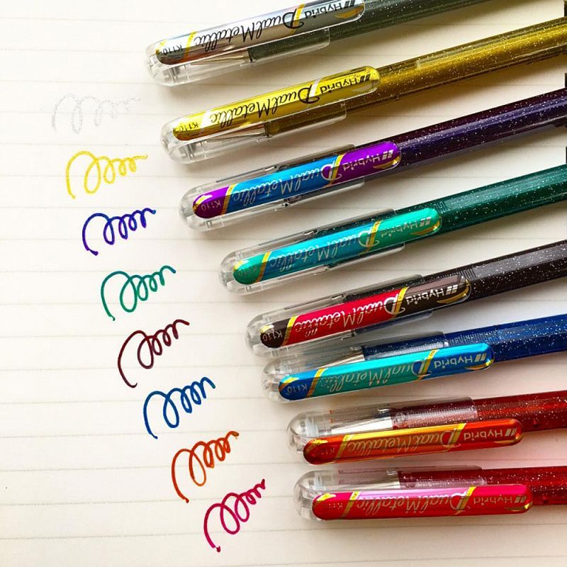 Гелевые ручки с двухцветными гелевыми чернилами Hybrid Dual Metallic. Яркие гелевые чернила с эффектом "хамелеон".