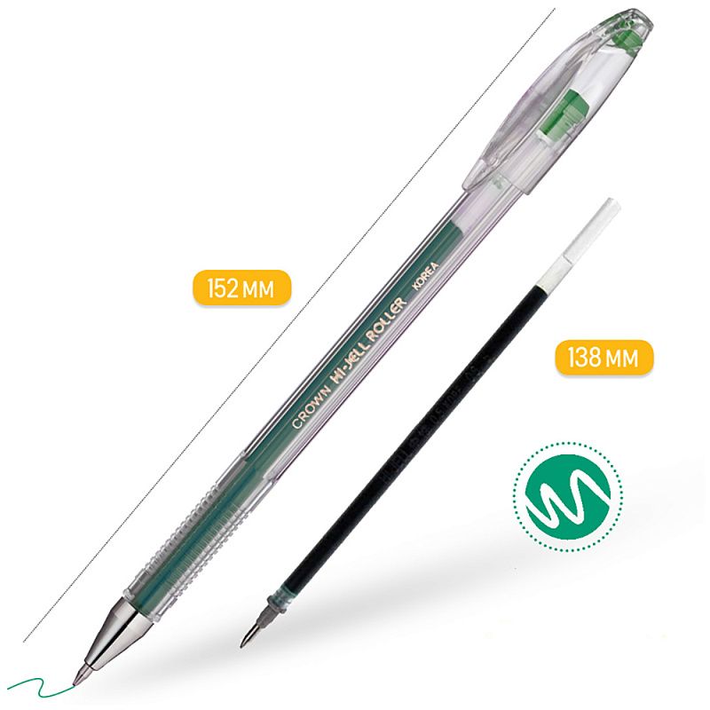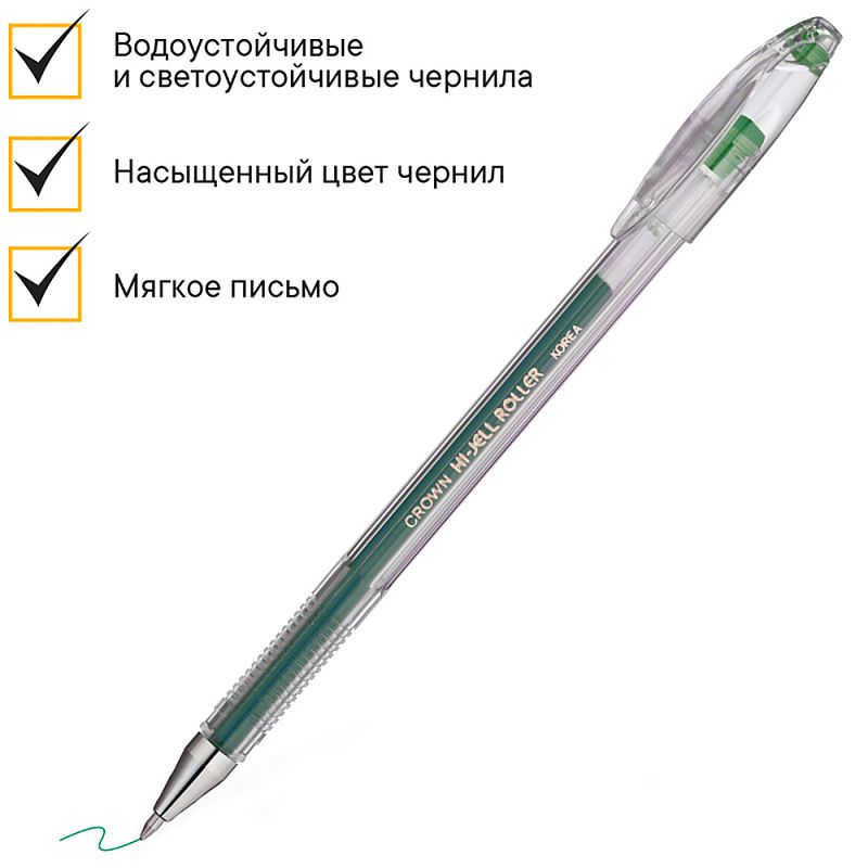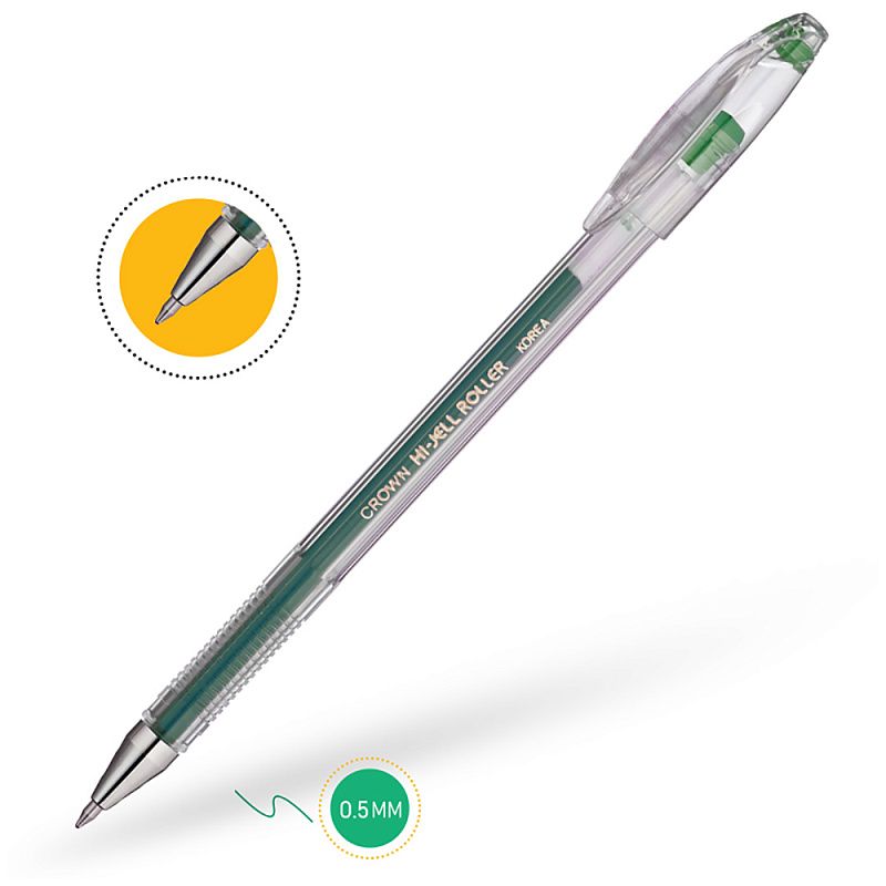 Ручка гелевая "Hi-Jell", 0.5 мм, прозрачный, стерж. зеленый