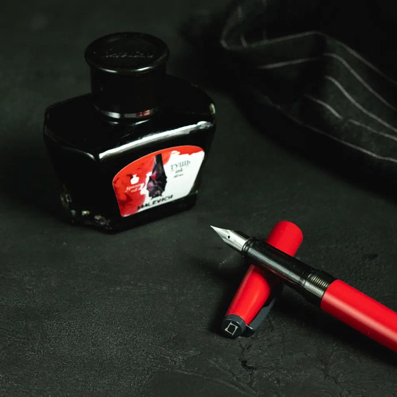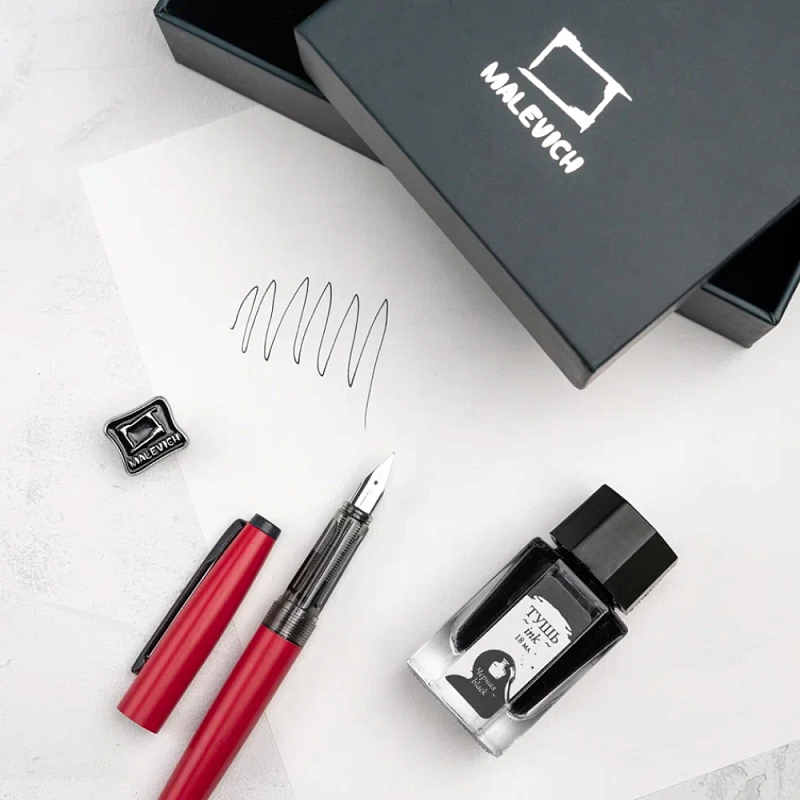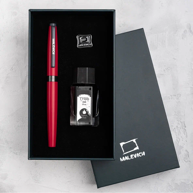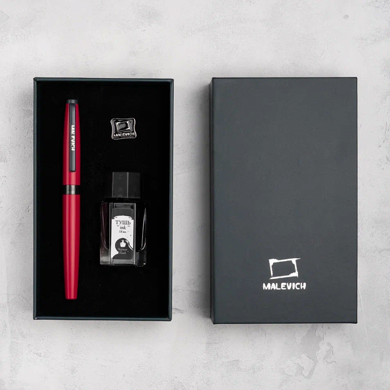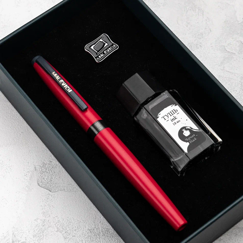 Ручка перьевая EF "Малевичъ", металл, с конвертером, набор чернила + значок, красный