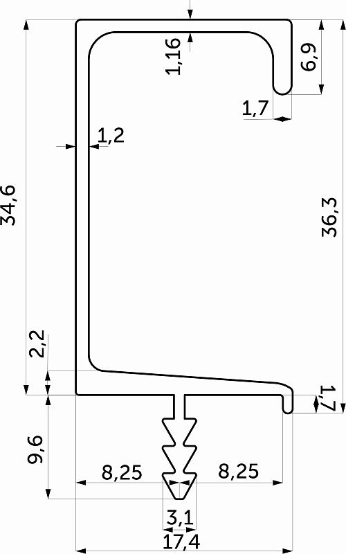 Алюминиевая ручка-профиль, врезная, С-образная, под толщину ДСП 16 мм, общая длина 3. 5м (полезная длина профиля 3,45м), цвет серебро, покрытие анодировка. Для открывания/закрывания мебельных фасадов и ящиков, являются декоративным элементом.Технические характеристики: