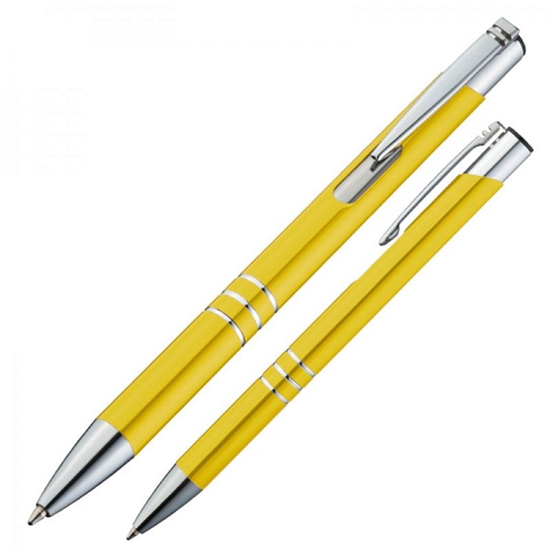 Ручка шариковая автоматическая "Ascot", 0.7 мм, желтый, серебристый, стерж. синий