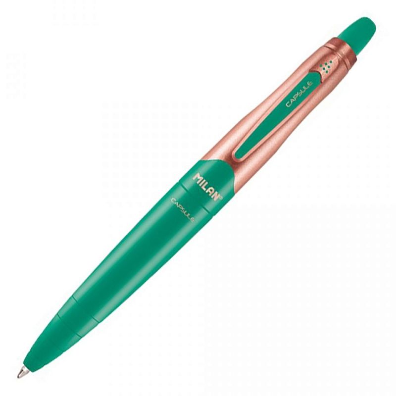 "Capsule Coop" – высококачественная шариковая ручка в корпусе бронзового цвета. Система подачи чернил обеспечивает мягкое письмо без пропусков. Чернила изготовлены в Германии. Ручка идеальна для применения в офисе, школе или дома. Современный дизайн. Нижняя часть корпуса ручки и кнопка выполнены в одном из цветов: черный, фиолетовый, розовый или зеленый.