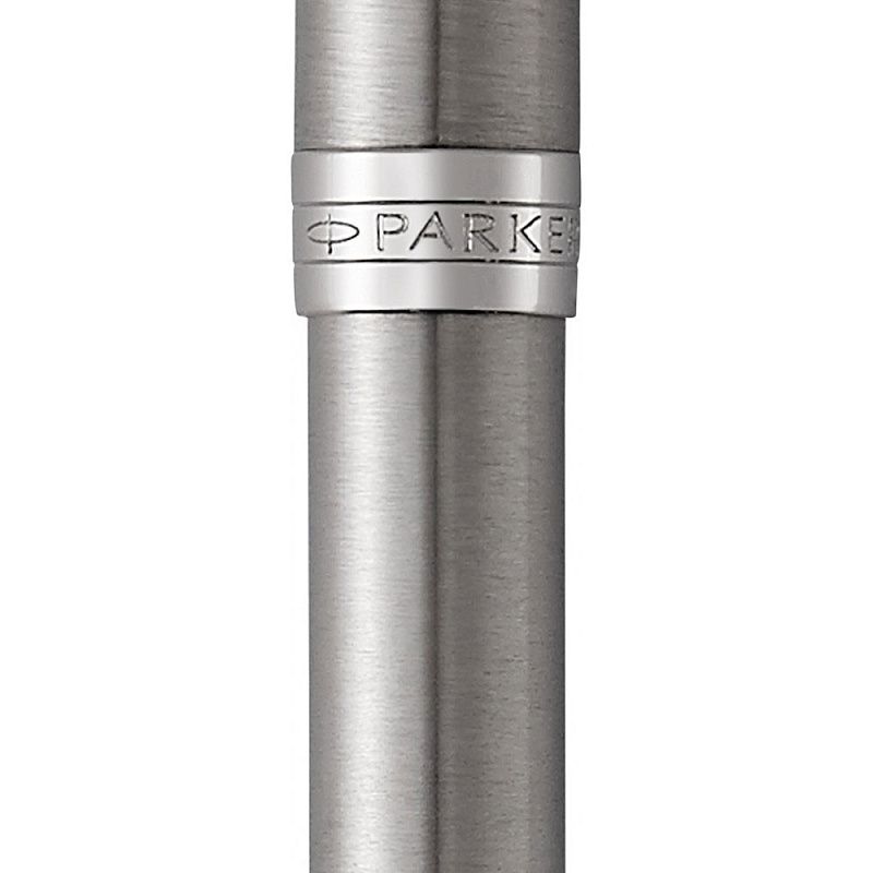 Корпус из нержавеющей стали с эффектом шлифовки. Дизайн дополнен декоративными элементами с палладиевым покрытием и пером из нержавеющей стали. Ручка упакована в специальную подарочную коробку Parker.